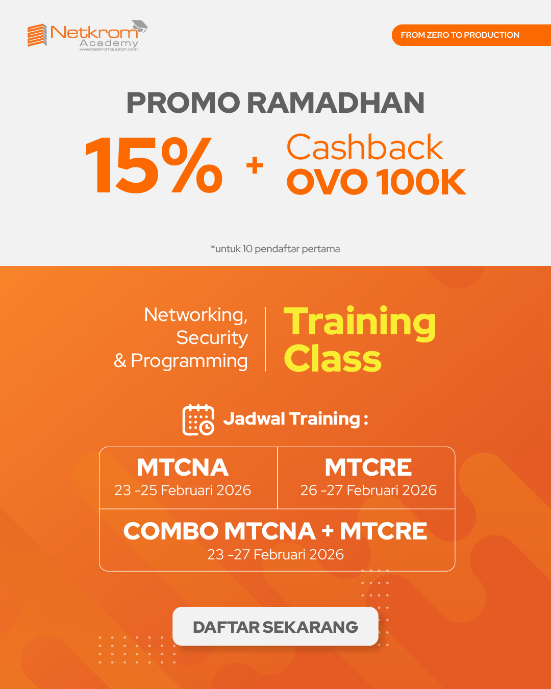 PT NETKROM SOLUSINDO adalah perusahaan yang bergerak di bidang Hardware & Networking, Konsultan IT, dan Pelatihan Teknologi Informasi (IT Training). Didirikan sejak tahun 2011, Netkrom Solusindo hadir sebagai mitra terpercaya dan strategis membantu perusahaan dan institusi dalam mengembangkan infrastruktur teknologi yang andal, efisiensi dan siap menghadapi tantangan era digital.